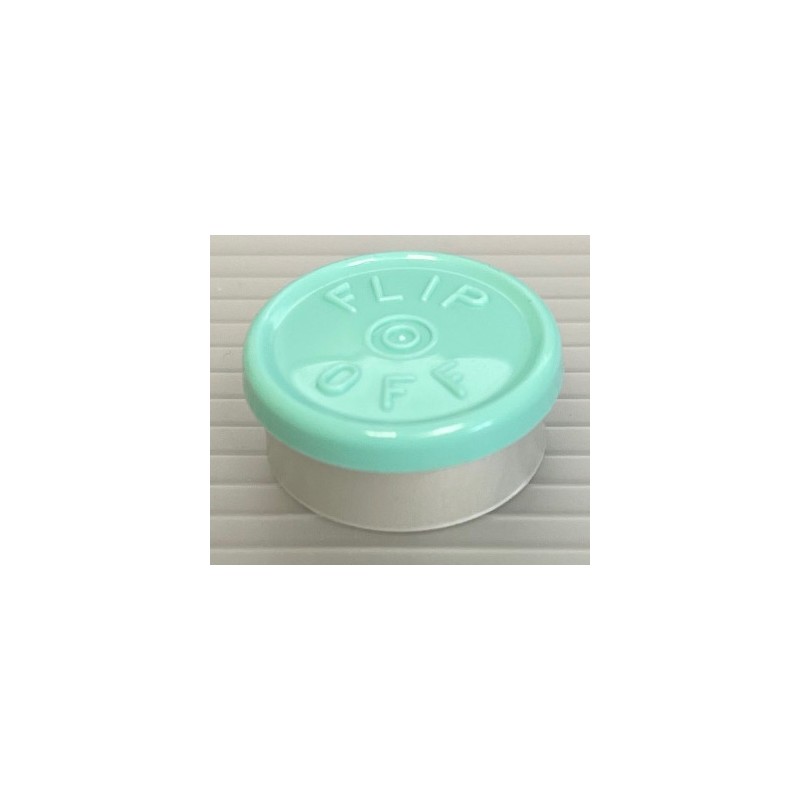 20mm Flip Off Vial Seals, Faded Turquoise Blue, Bag of 1000. For serum vials that have a 13mm hole opening and 20mm outside rim-to-rim diameter. Manufactured in the USA by West Pharma.